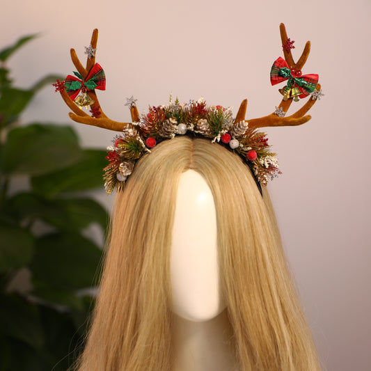 Handmade Antler Christmas Headband - Brown Woodland Reindeer Headband