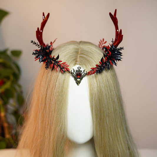 Handmade Antler Crown - Black Gothic Headband Red Fairy Heapiece