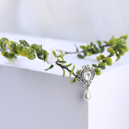 Handmade Green Fairy Flower Crown - Woodland Floral Headband Elf Circlet Forest Tiara