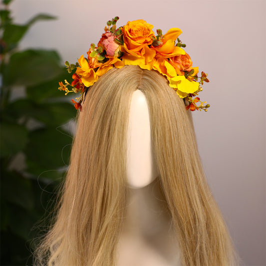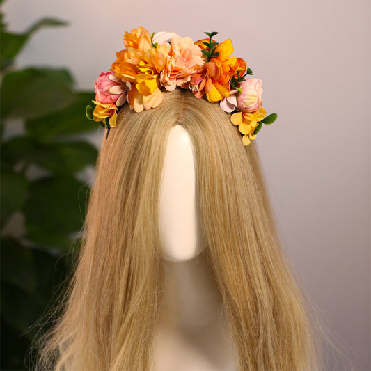 Handmade Orange Mexican Flower Headband - Floral Woodland Boho Crwon