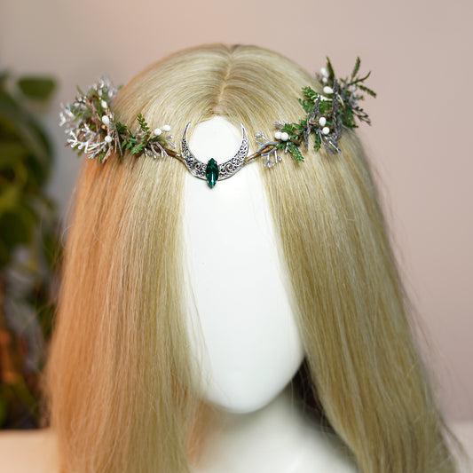 Handmade Green Moon Flower Crown - Woodland Elf Headband