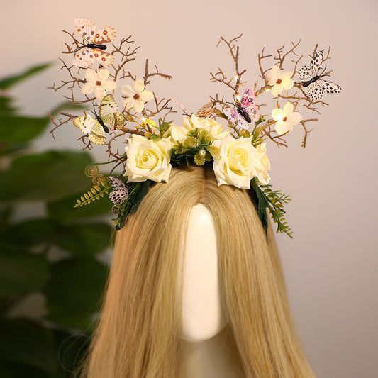 Handmade LED Woodland Butterfly Headband - White Forest Flower Hairband