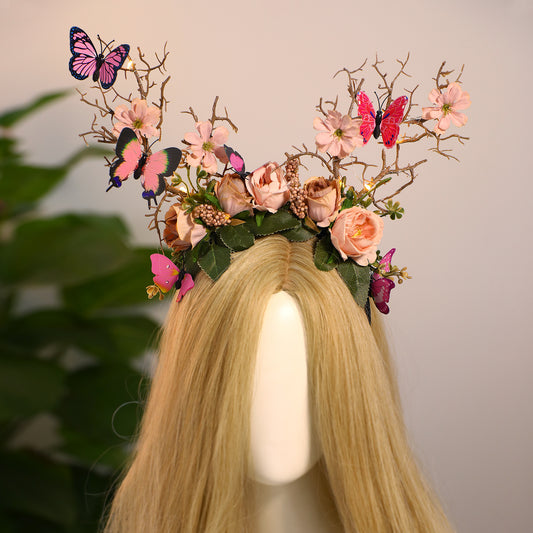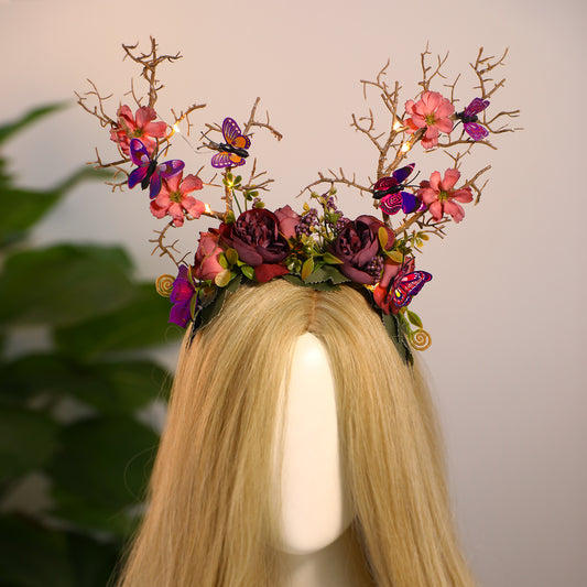 Handmade LED Flower Antler Headband - Light up Woodland Renindeer Hairband