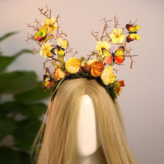 Handmade LED Butterfly Branch Headband - Yellow Woodland Hairband
