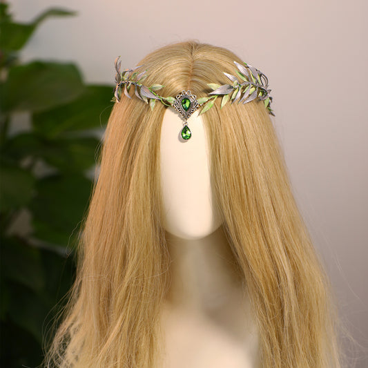 Handmade Green Fairy Crown Headband Woodland Leaf Headpiece