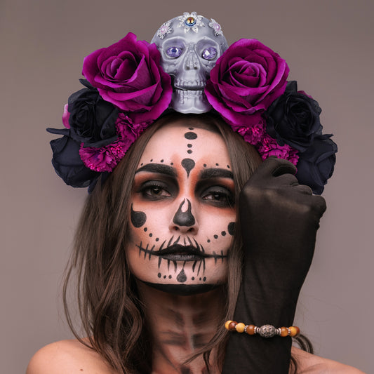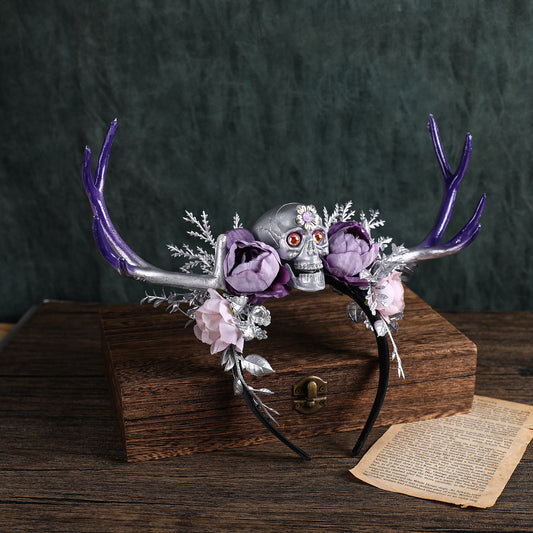 Purple Antler Headband with Skull: Dark Branch Flower Headpiece