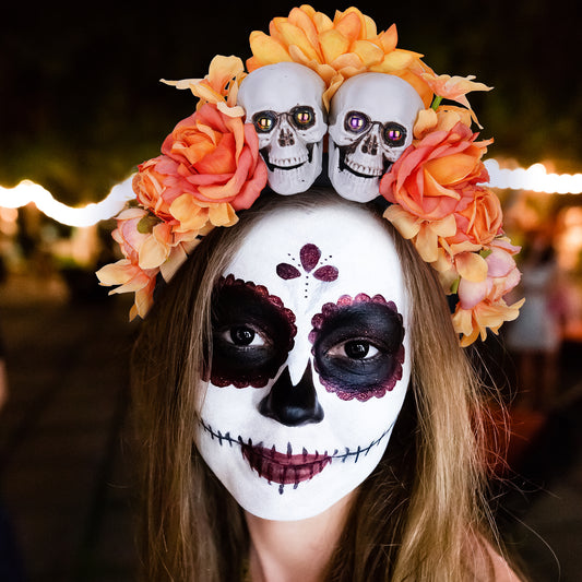 Orange Mexican Flower Headband: Skull Floral Hairband