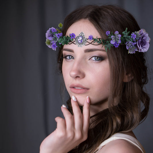 Purple Elf Flower Crown - Handmade Woodland Elf Headpiece Forest Fairy Crown