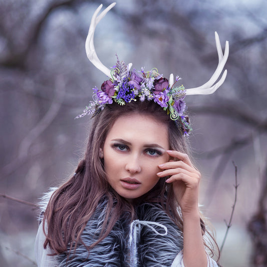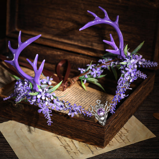 Purple Fairy Antler Crown - Elf Flower Circlet Woodland Floral Headpiece