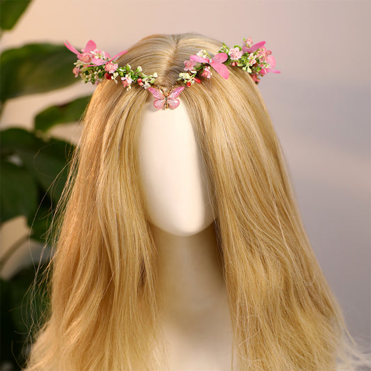 Pink Elf Flower Crown - Handmade Butterfly Fairy Headpiece Floral Circlet