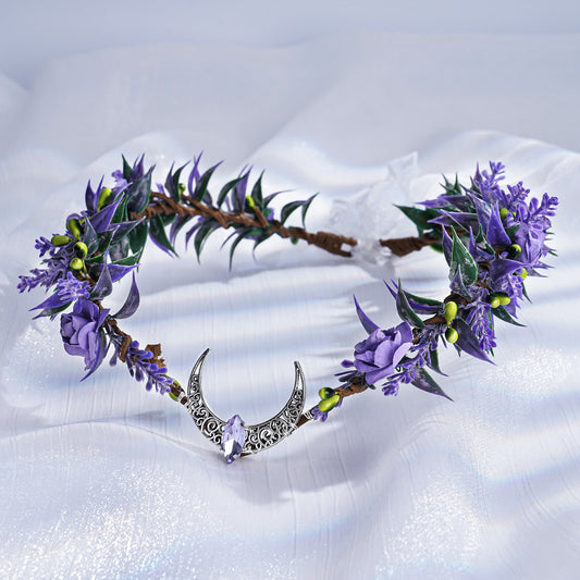 Purple Moon Flower Crown - Handmade Floral Fairy Headpiece Woodland Elven Circlet