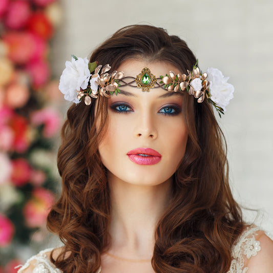 Fairy Flower Crown Elf Crystal Pendant Garland Tiara