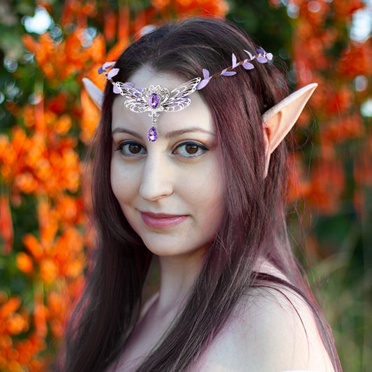 Fairy Leaf Rhinestone Crown with Elf Ears Set