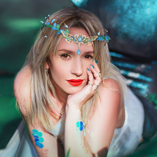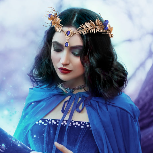 Fairy Queen Headpiece Moon: Blue Crystal Crown, Elf Rhinestone Headband