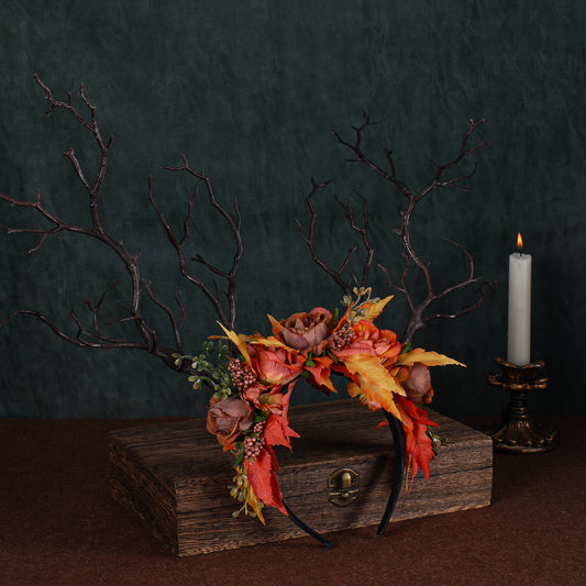 Fairy Flower Antler Crown - Woodland Floral Hairband Forest Antler Circlet