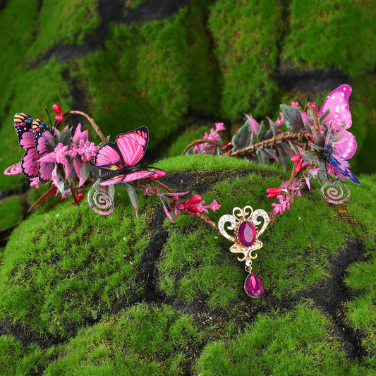 Fairy Queen Crown: Pink Wings, Elf Headpiece, Woodland Butterfly