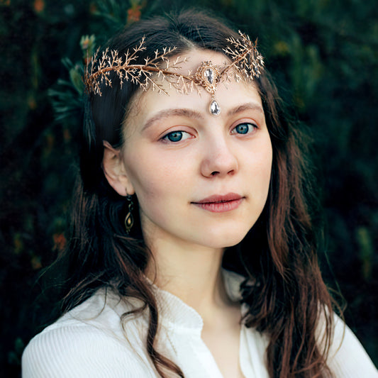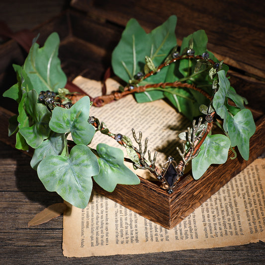 Woodland Leaf Fairy Crown - Floral Elf Crown Forest Headpiece Green Leaf