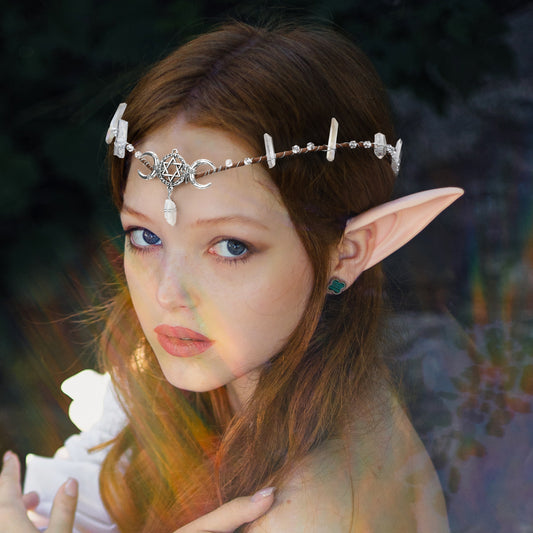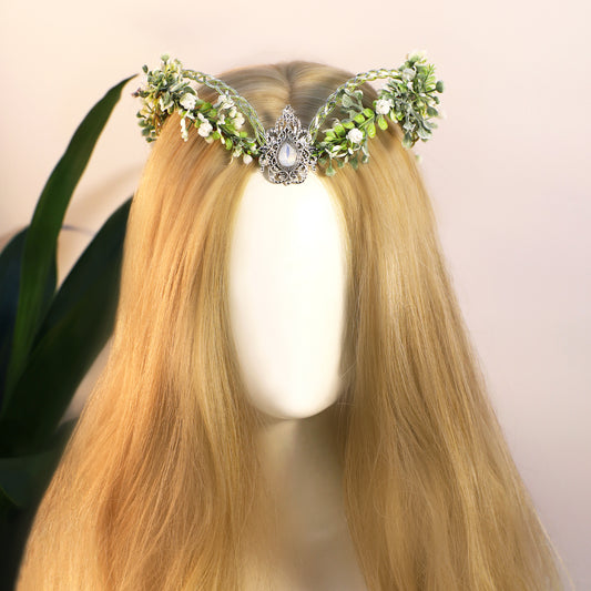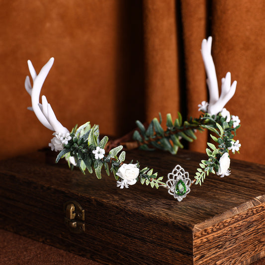 White Antler Fairy Crown: Green Forest Elf Tiara