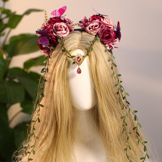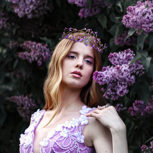 Purple Fairy Flower Crown - Elf Woodland Headpiece Floral Vine Headband