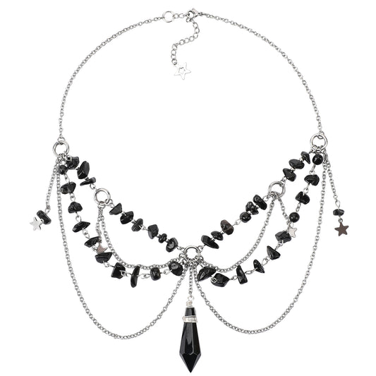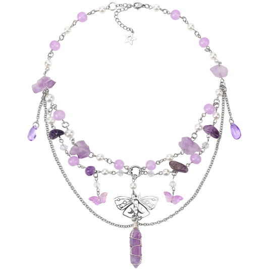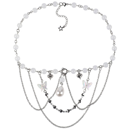 MOSTORY White Beaded Crystal Neckalce for Women Layered Charm Choker