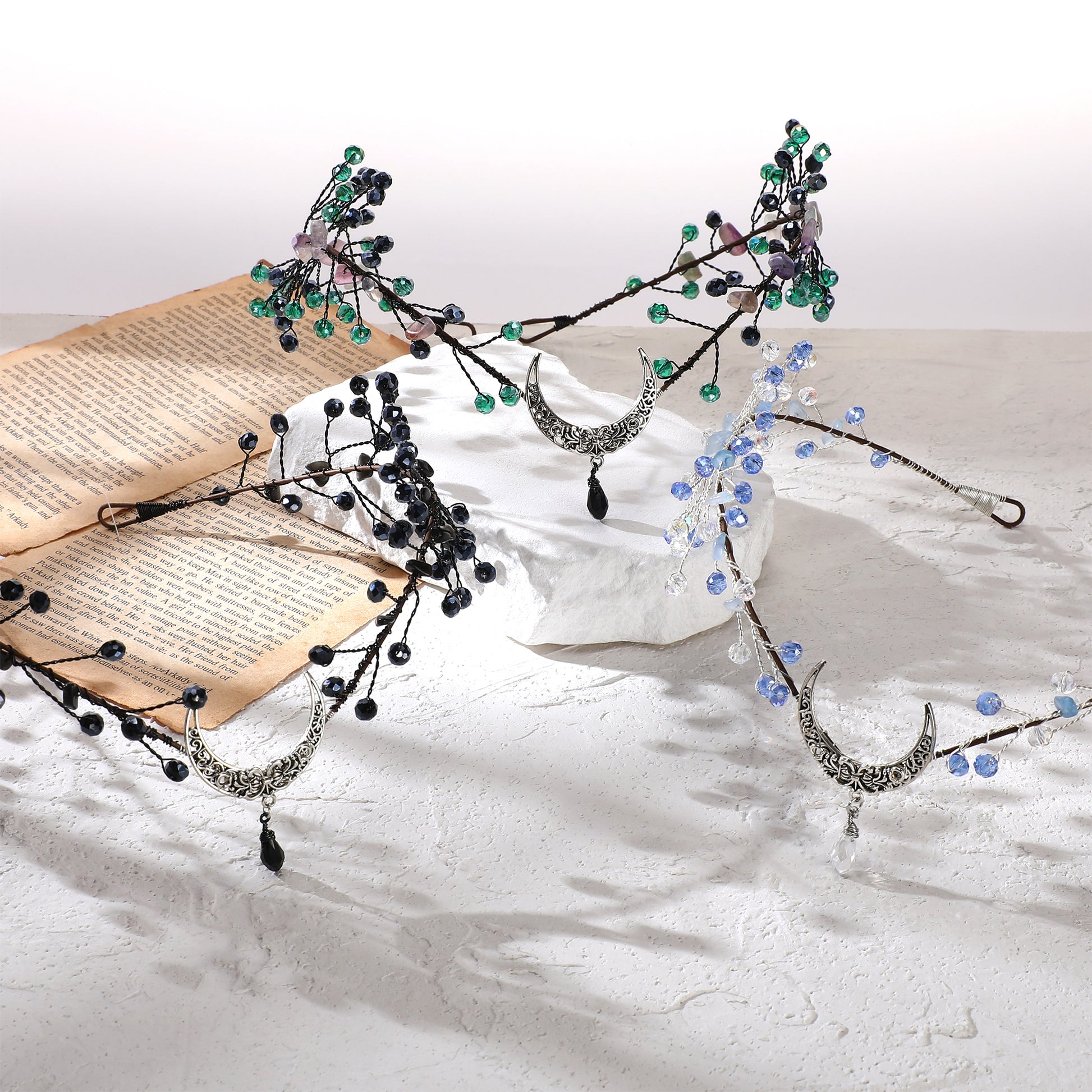 Gothic-inspired Design: Embrace the style of Gothic fashion with the fairy crown, featuring dark and mysterious aesthetics.Handmade Craftsmanship: Each fairy crown is meticulously crafted by hand, ensuring exceptional quality and attention to detail.Vibrant Color Selection: With a variety of colors to choose from, the crystal crown allows you to express your unique style effortlessly.Versatile for Any Occasion: Perfect for Renaissance festivals, cosplay events, weddings, themed parties, and more, the crystal crown adds a touch of enchantment to any ensemble.Exquisite Detailing: Adorned with intricately arranged crystal beads, the fairy crown sparkles with elegance and grace, making you shine wherever you go.