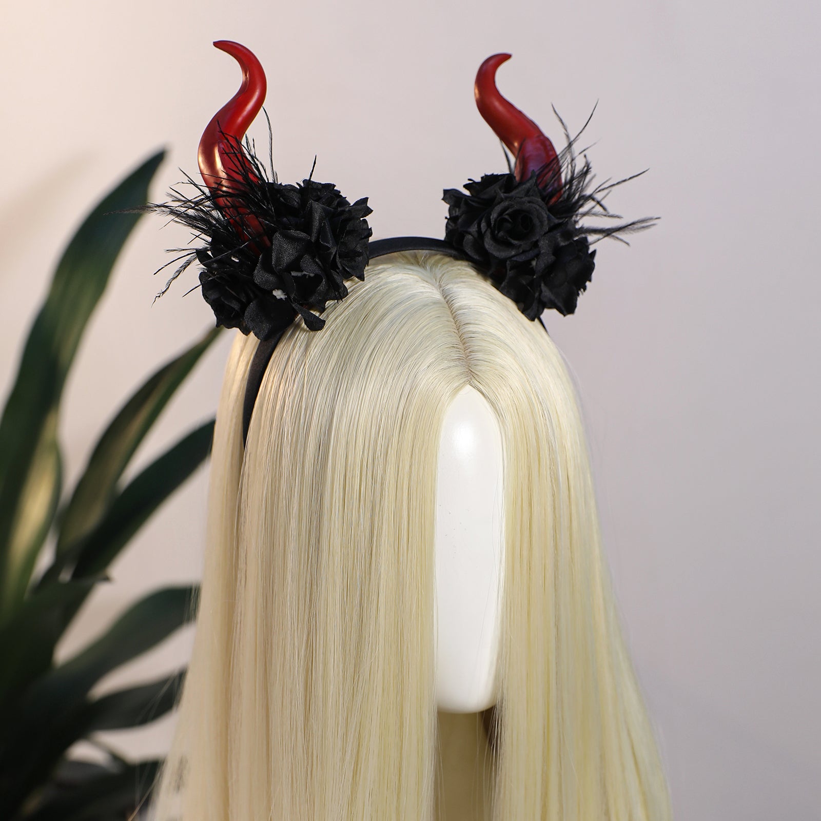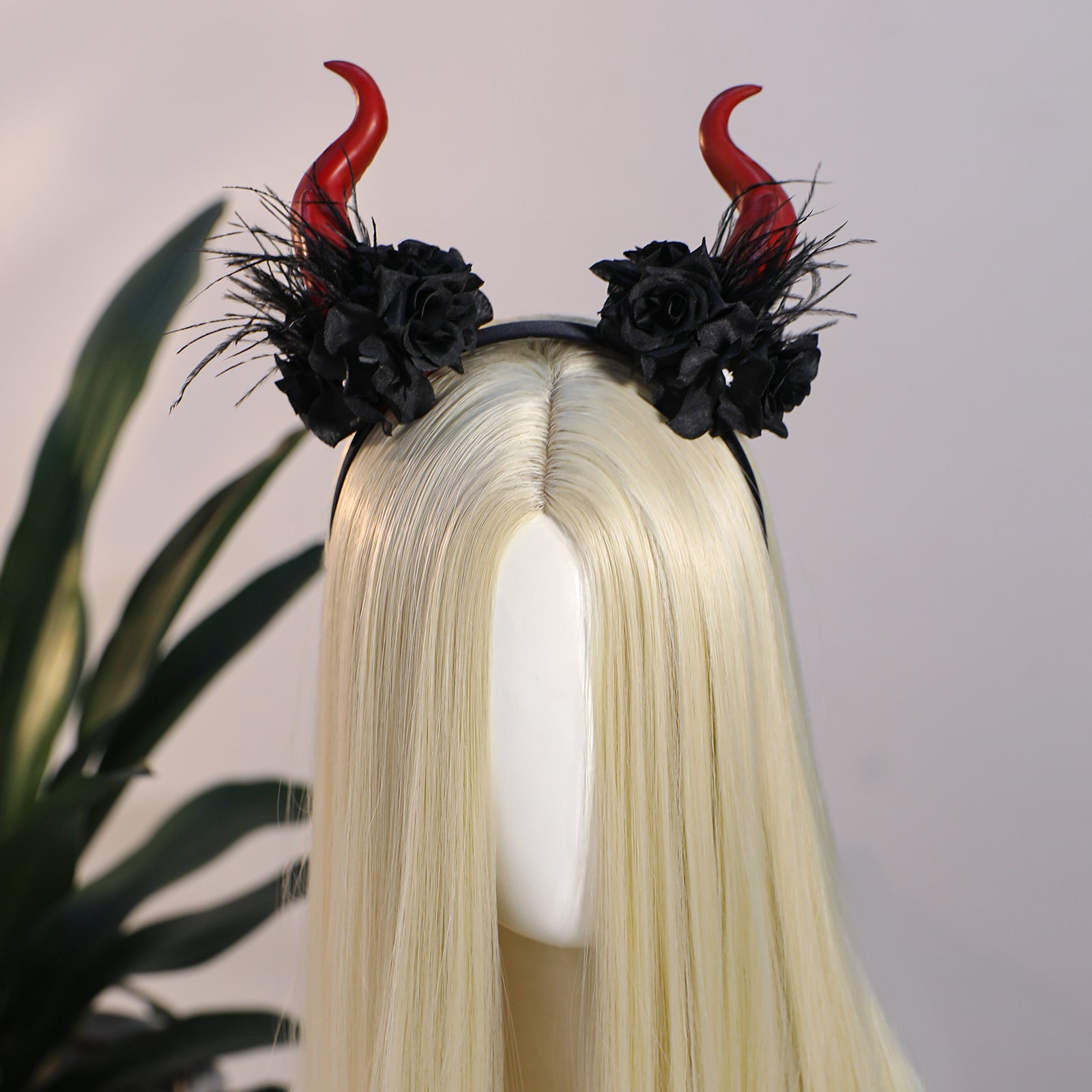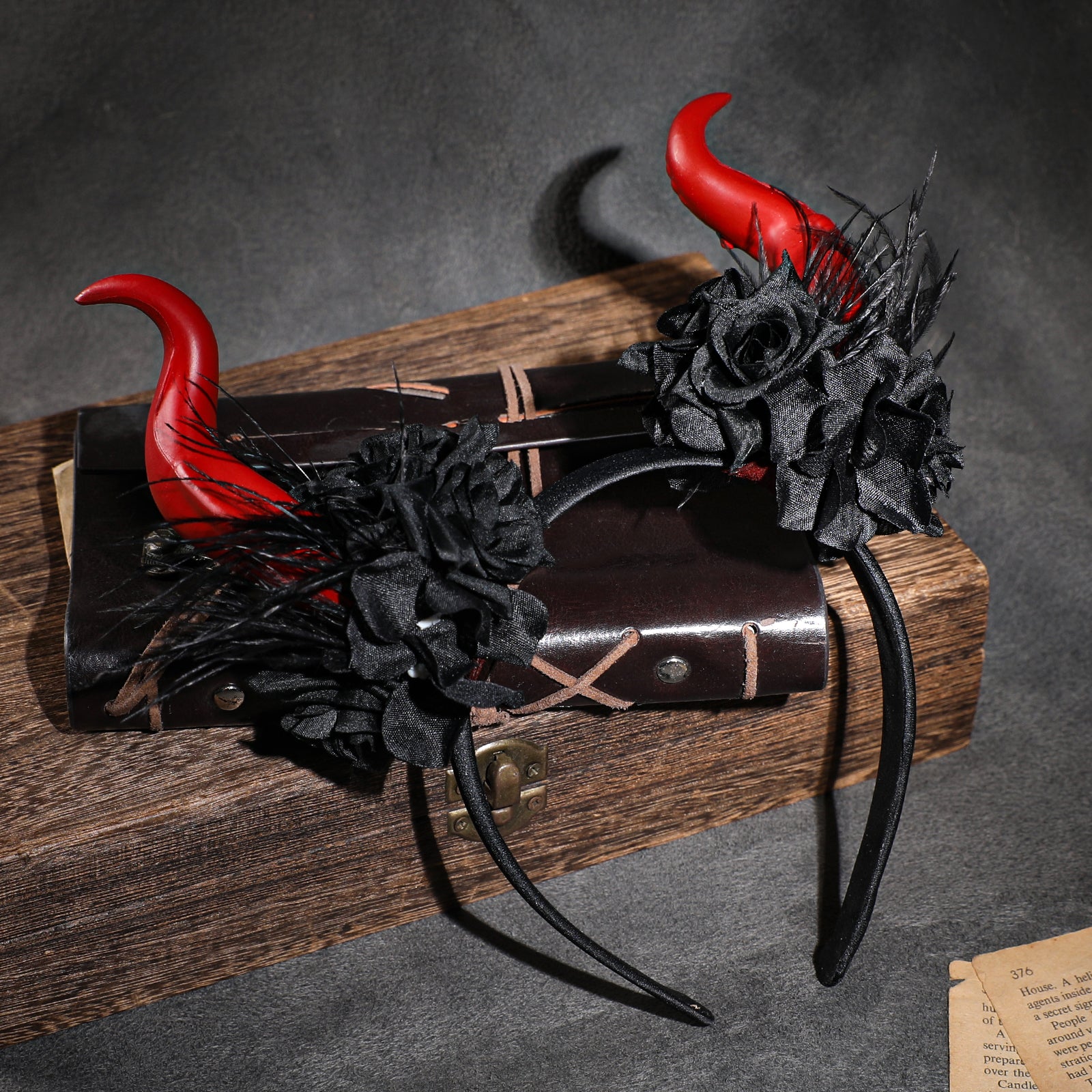 Black Halloween Horns Headband - Devil Flower Horn Headband Demon Floral Horns